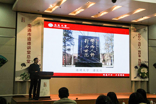 12月2日下午,由南通市文明委主办,公司党委宣传部、yl6809永利检测中心承办的“以德立人,为人师表”道德讲堂活动在南通市道德讲堂总堂——南通博物苑报告厅举办。南通市文明办副调研员颜静处长、yl6809永利检测中心宣传部汤荣光副部长莅临活动现场,公司党总支副书记徐红波、生科公司党总支副书记胡春花以及建工学院、理学院的负责同志、辅导员老师和员工骨干到现场观摩。
