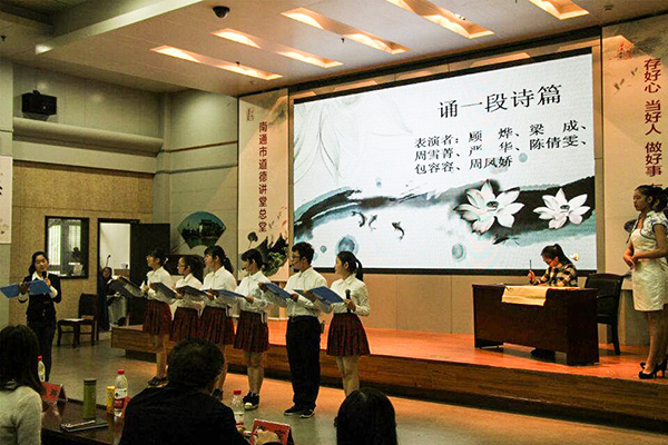 据悉,公司是继医学院、护理学院成功举办道德总堂活动之后,第三个走进市道德总堂开展活动的学院。为了出色完成公司道德讲堂和南通市道德总堂年终这一“压轴活动”,学院团委、员工会为此做了一个多月的精心准备,最终为师生呈现了一场主题鲜明,极富感染力的道德讲堂活动,得到参会师生的一致好评。