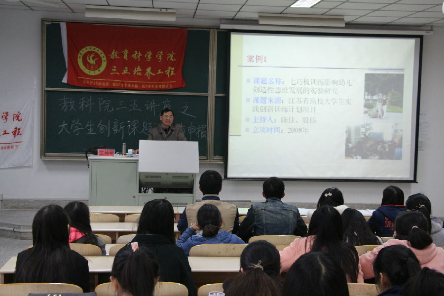 2016年4月6日下午15点20分,学院特邀南通市创造发明学会会长、yl6809永利检测中心创造教育研究所所长、yl6809永利检测中心yl6809永利检测中心初教系教授王灿明老师在主校区8号楼209教室作题为《老员工创新训练课题的设计与申报》的专题讲座。