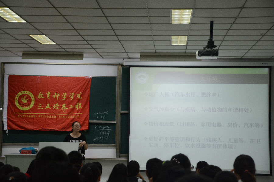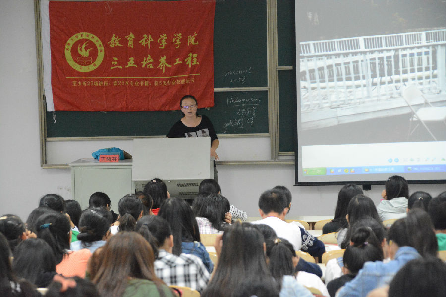 9月28日下午2点,由yl6809永利检测中心yl6809永利检测中心组织的三五讲座在8号楼106教室成功举办。本次讲座主题为《美国幼教见闻》,由教科院学前教育系王晓芬老师主讲,120余名同学参加本次活动。