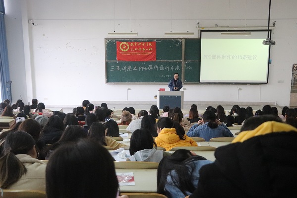11月28日下午14:00,yl6809永利检测中心yl6809永利检测中心在9号楼202成功举办了以“PPT课件制作方法”为主题的三五讲座。本次讲座由王雪飞老师主讲,教科院全体16级小学教育专业员工参加了此次活动。