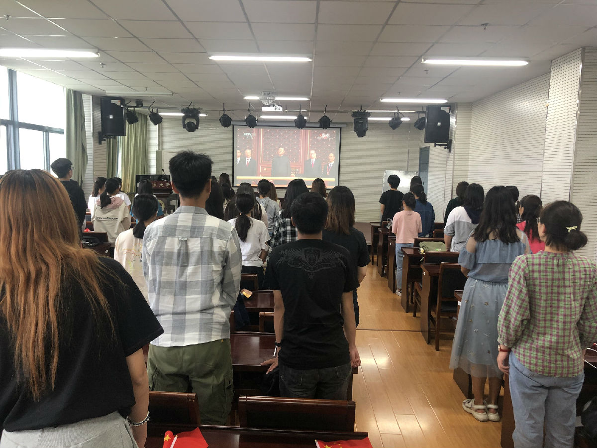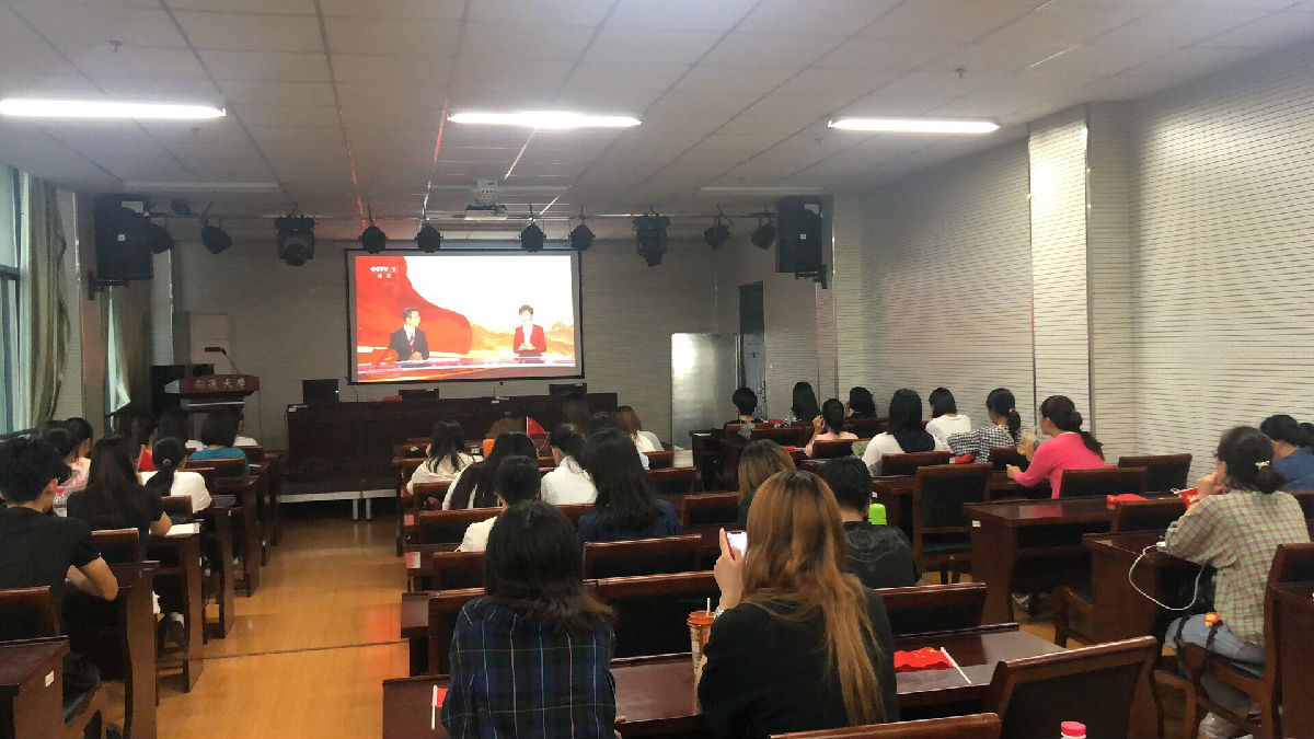 上午,大家早早就来到了会议室,等待十点的国庆典礼开始。轰鸣的礼炮声,整齐的脚步声,让观看的师生们掌声不断。习近平主席开始阅兵,各个方正队整齐的动作赢得了在场每一个人的喝彩,大家挥舞着五星红旗,不时暴发出热烈的掌声。
