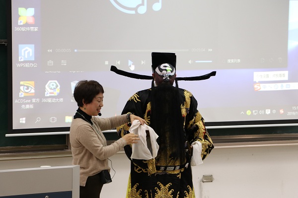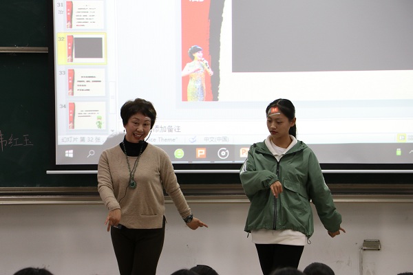 韦红玉向员工们介绍了京剧的历史演化进程,京剧是经历了徽调,汉调的融合,又吸收了汉调、秦腔、昆曲的部分剧目、曲调和表演方法,演变成一种新的声腔,更为悦耳动听,称为“京调”。现在我们称为京剧。韦红玉向员工们介绍京剧的角色:根据男女老少、俊丑正邪,分为生、旦、净、丑四大行当。角色行当的表演各有不同的程式动作:唱,念,做,打,手,眼,身,法,步各有不同的特点,富有舞蹈性和高超的技巧。接着,她和她的团队更是以唱曲的方式,以《贵妃醉酒》与《金玉奴》为例,亲身示范,邀请在坐的同学上台学习京剧的基本手势和动作,整场活动生动有趣,同学们通过观摩、试唱、学习,深深的感受到了京剧的魅力。