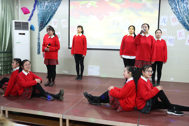 《儿童歌曲演唱》课程汇报内容丰富,课程汇报共有12个节目,涉及各种程度的幼儿歌曲、儿童歌曲、艺术歌曲、合唱歌曲。课程汇报形式形式多样,有京歌对唱《蝈蝈和蛐蛐》、女生小组唱《山楂果》、幼儿歌曲联唱《粗心的小画家》等、男生独唱《共和国之恋》、歌舞《妈妈格桑拉》、女生二部合唱《半个月亮爬上来》以及领唱与合唱《跟彩虹一起成长》。