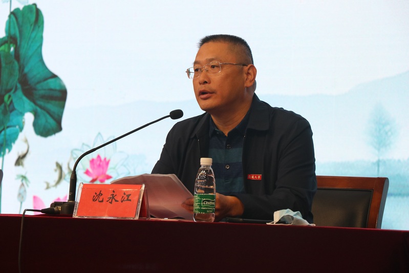 沈永江致欢迎词,他从专业构成、团队力量、培养方案等方面介绍了学院的基本情况,鼓励新同学在新的环境中开拓创新,学有所成。