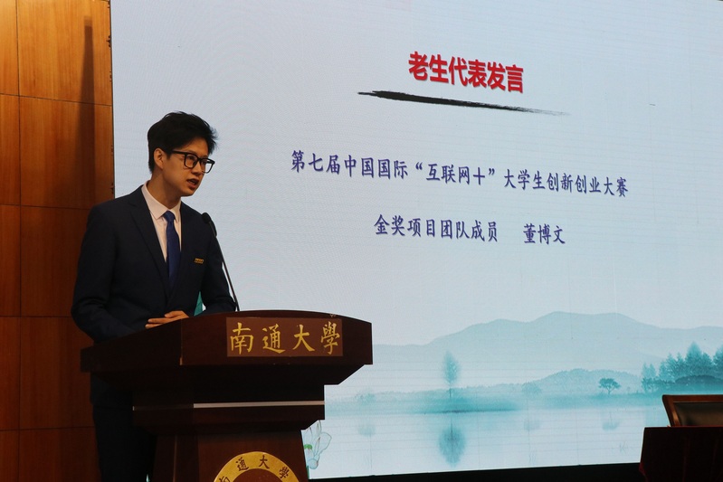 在大学期间如何能够成为最好的自己?典礼现场,学院邀请在第七届中国国际“互联网+”老员工创新创业大赛获得金奖的“派斯盾‘鞘翅甲’仿生纳米自洁涂层”研究团队中公司的两名成员元淑芬、董博文登台亮相。元淑芬同学学习出众,堪称“全能学霸”;董博文同学能力出众,堪称“演讲达人”,两位同学为新生群体带来榜样的力量。董博文作为老生代表分享了他参加“互联网+”老员工创新创业大赛的艰辛的备赛经历和人生感悟,他认为,努力是最好的答案,拼搏的汗水总是在熠熠生辉,人生的路途是漫长的试炼与成长。