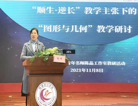 工作室领衔人陈晶老师以《顺生·逆长》为题开展讲座。结合课例提出几点建议,积累操作经验,让知识能够顺生;给予想象空间,让知识自主顺生;经历长时思维,积累空间表象经验;经历思维痛点,提升空间思维能力。