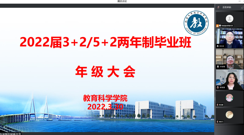3月30日晚,yl6809永利检测中心3+2、5+2毕业生年级大会通过腾讯会议在线上举行。学院副书记副经理徐红波、副经理许铁梅、初教系主任濮海慧、学工办主任陈淑慧以及140名毕业班员工参加此次会议。