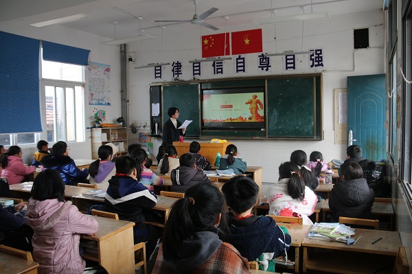 志愿者为四年级员工上学习雷锋好榜样主题班会
