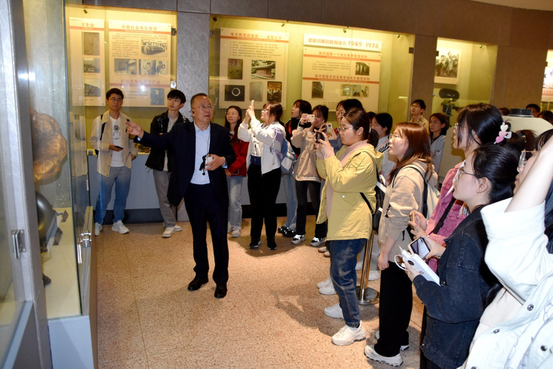 现代教育技术博物馆原馆长张小红老师围绕百年发展历史的教育技术人物事件、教育技术设备器材,“教育技术概论”课堂学习,“技术变革教育”,教育技术推动教育信息化、教育现代化等内容为来访师生做了详细讲解。