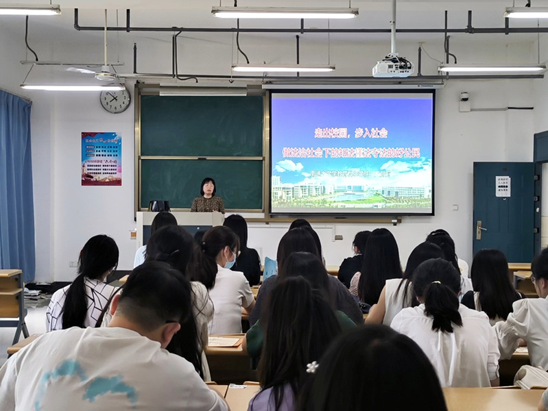 6月8日下午,学前教育系副教授王丽莉为学前教育2019级毕业生做题为《走出校园,步入社会,做法治社会下的知法懂法守法的好公民》的专题讲座,为即将步入社会的毕业生补充必要的法律知识。