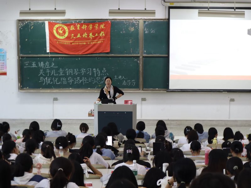 儿童是知识的本体,知识必须由儿童来自主构建的。在儿童钢琴教育领域,我们必须要充分了解儿童的认知特点,科学施教,让儿童置身于优美的音乐氛围中,以境动情,情景交融,在美的感受中获取音乐素养。本次讲座,让很多师范生受益匪浅,为日后工作积累指导性理论经验,进行教育方法创新,让更多人了解儿童钢琴教学。