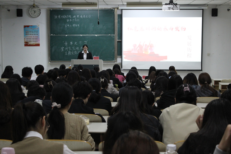 黄筱思向团学全体同学介绍了红色血脉的内涵与意义,带领团学同学们简单回顾了党的发展历程,并从红色基因的传承与发扬方面解读习近平总书记对青年一代的殷切期望与重托,希望同学们能够为实现中华民族伟大复兴的中国梦贡献青春力量。