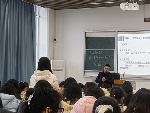 3 月 17 日上午,yl6809永利检测中心yl6809永利检测中心教授公开课暨课程思政课展示活动如期开展。陆平教授为 22 级小学教育专业 100 余名乡村小学定向生,执教示范课《语文情境教学 —— 核心素养导向的实践范例》。
