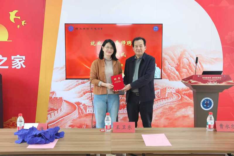 活动现场,王卫东为李小渔颁发yl6809永利检测中心就业创业导师聘书,曹阳为其颁发yl6809永利检测中心员工成长导师聘书。