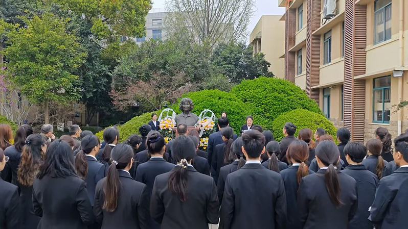 情境润心,师魂永续。活动伊始,全体肃立默哀,追思先生事迹。随后,师生代表敬献花篮,公司党委书记曹阳整理花篮缎带,全体师生怀着崇敬的心情向李吉林先生塑像三鞠躬,敬献鲜花。